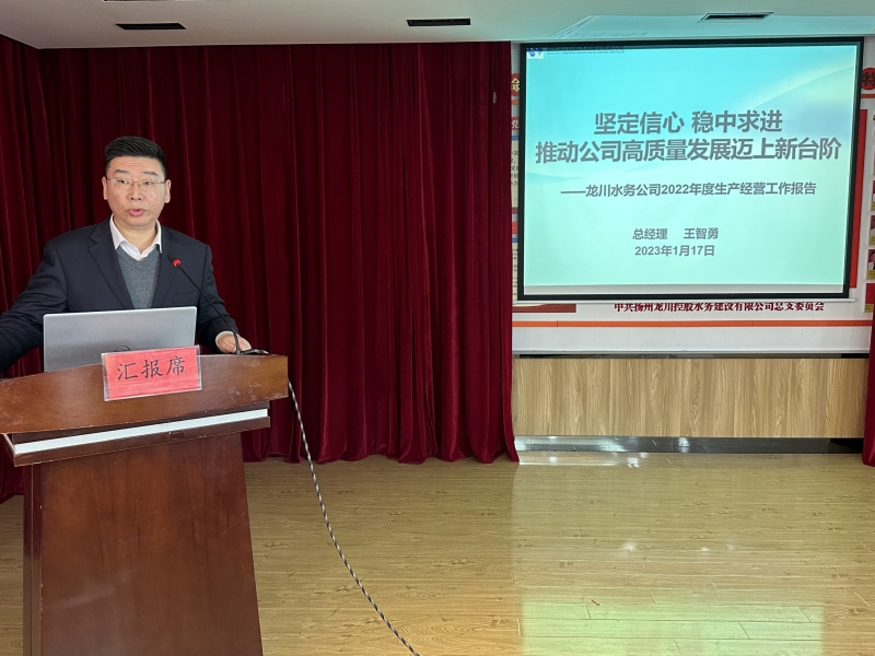 在本次大會匯報交流環(huán)節(jié),分別聽取了計劃財務(wù)部、運(yùn)營技術(shù)部、黨群工作部、自來水公司、惠民區(qū)域供水公司、龍泉建設(shè)工程公司、龍川污水處理公司等七個部門單位2022年工作總結(jié)報告。各部門、子公司負(fù)責(zé)人分別圍繞2022年全年生產(chǎn)經(jīng)營指標(biāo)、重點(diǎn)工作完成情況、存在的主要問題、解決對策以及2023年工作計劃作了交流匯報。