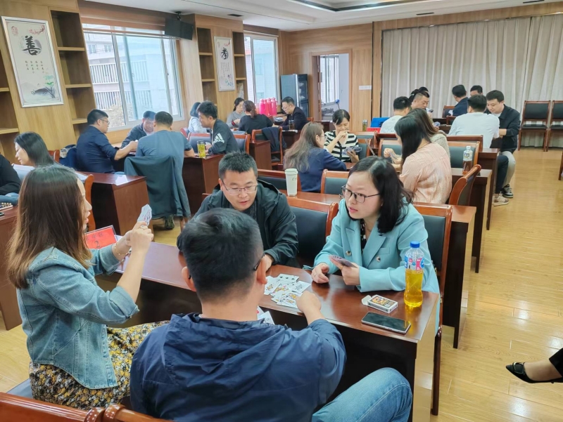 比賽遵循“公平、公正、公開”的比賽規(guī)則,通過抽簽的方式確定對陣雙方,經(jīng)過賽前簡單的開幕儀式以及競賽規(guī)則解釋后,各位選手迅速進入競技狀態(tài)。比賽現(xiàn)場,各組選手密切配合,精確計算、沉著應戰(zhàn),以牌會友、競技交流,整個比賽氣氛緊張而愉快,大家充分利用自己的智慧和技巧,展示出了高超的牌技和團隊協(xié)作能力,賽出了風格和水平。