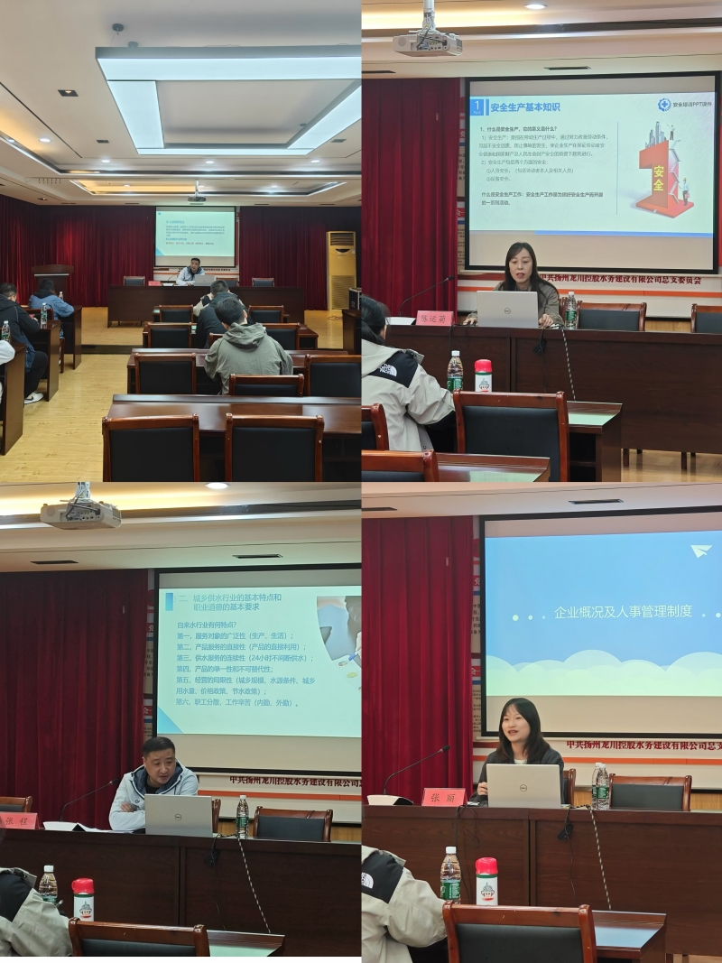 公司總經(jīng)理李忠國做了開班動員講話,對各位新員工提出了殷切的希望和要求,一是要樹立從事水務(wù)工作的職業(yè)自豪感、使命感,提高工作責任感;二是要堅持慎獨自律,高標準要求自己,扣好人生第一粒扣子;三是要加強學習鉆研,干一行愛一行,立足崗位成長成才。本次培訓圍繞職業(yè)道德及廉潔從業(yè)教育、安全生產(chǎn)教育、企業(yè)概況及人事管理制度等方面內(nèi)容,分別由三位經(jīng)驗豐富的兼職授課老師進行講解,并安排新員工實地參觀了公司二水廠、邵伯油田污水廠等兩個生產(chǎn)現(xiàn)場,了解自來水生產(chǎn)工藝和污水凈化處理過程。