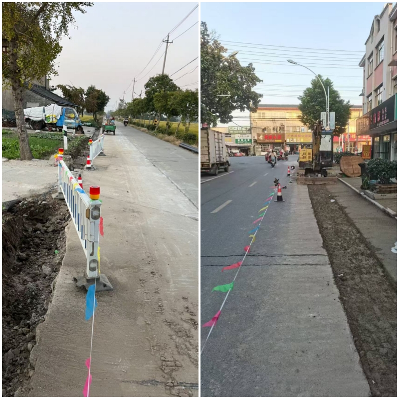 此次宜陵專項(xiàng)債改造區(qū)域管網(wǎng)為原小水廠鋪設(shè)的,管網(wǎng)使用年限長(zhǎng),部分管齡超20年,有鐵管、PVC管、PPR管等,管網(wǎng)材質(zhì)參差不齊,且?guī)准倚∷畯S未能統(tǒng)一規(guī)劃管線走線,導(dǎo)致管網(wǎng)末梢水壓低,存在發(fā)現(xiàn)漏點(diǎn)后閥門關(guān)閉無(wú)法斷水維修等困難。2024年公司前期投入大量人力和物力走現(xiàn)場(chǎng)、測(cè)繪、拿方案,最終決定將該區(qū)域老管網(wǎng)全部廢棄,鋪設(shè)DN200和DN150球墨鑄鐵管作為供水主管網(wǎng)與區(qū)域供水管網(wǎng)相接,進(jìn)村入戶支管網(wǎng)采用DN110-DN25PE管鋪設(shè)。